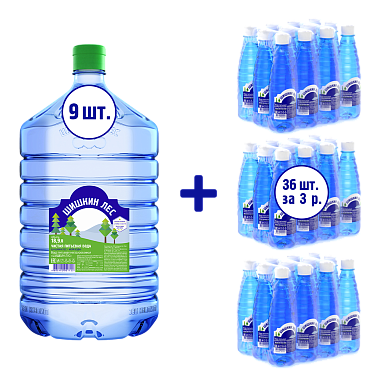 Купи 9 бут. воды "Шишкин лес" 18,9л в одноразовой таре и получи 3 уп. 0,4л газ по цене 1руб. за каждую.