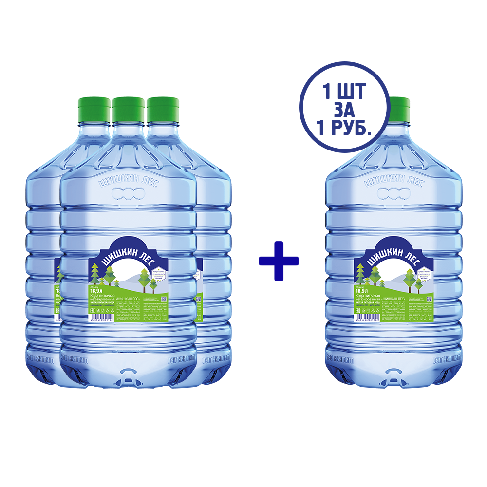 Комплект воды 18,9 л в одноразовой таре 3 + 1 бутылки при оформлении первого заказа для новых клиентов.